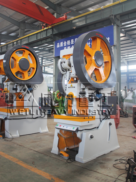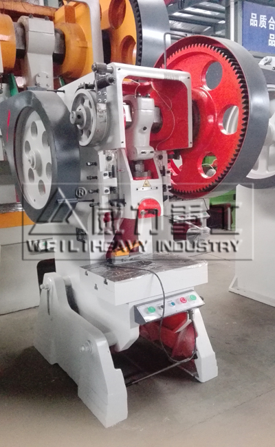 【產(chǎn)品描述】:可傾沖床是用于板料 沖壓的通用壓力機(jī), 可實(shí)現(xiàn)剪切,沖孔,落料,彎曲和淺拉伸成形等冷沖壓工序。工作時(shí)人工送料,另外配置送料裝置時(shí)可實(shí)現(xiàn)單機(jī)自動(dòng)化。 其結(jié)構(gòu)特點(diǎn)是:機(jī)身是用高強(qiáng)度鑄鐵制造,采用單盤氣動(dòng)塊式摩擦離合器和制動(dòng)器,無故障使用壽命遠(yuǎn)高于同類產(chǎn)品。滑塊帶有壓塌式保險(xiǎn)裝置,當(dāng)機(jī)床超載時(shí),保險(xiǎn)器首先被壓塌,從而保證了整機(jī)不受損壞。其特點(diǎn):