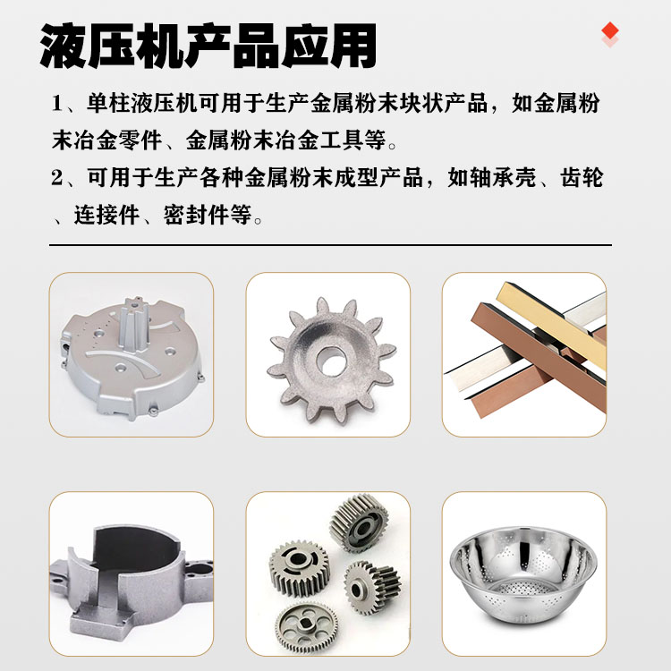 單柱液壓機(jī)在冶金粉末成塊的應(yīng)用以及壓制產(chǎn)品方面具有重要作用。在金屬粉末冶金成型過程中,單柱液壓機(jī)通常用于將金屬粉末壓制成塊狀、片狀或其他形狀的工件。