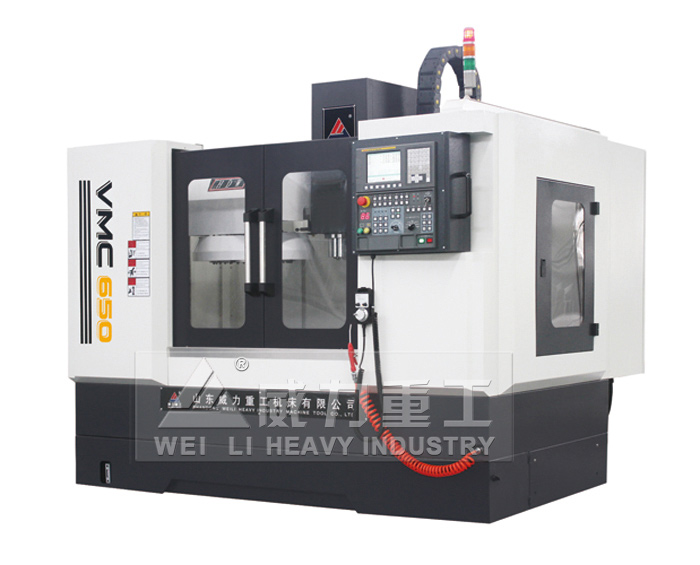 VMC650立式加工中心山東威力重工機床有限公司主打小型加工中心。本機床是適用于機械加工及模具制造領域的立式加工中心,能適應從粗加工到精加工的加工要求,可完成銑、鉆、攻、鏜等多種工序。該機床獨特堅穩持久的剛性主結構,經由工程力學的反復仿真與計算,設計堅穩的床身結構,達到剛性倍增而質量精簡的工程需求。全面硬化處理的移動滑軌,搭配精密的研磨加工,組合出令人滿意的精度品質。不僅適用于板類、盤類、殼體類、精密零件的加工,而且適用于模具加工。機床帶有自動刀具交換系統,全封閉式防護罩,自動潤滑系統、冷卻系統、自動排屑裝置、及便攜式手動操作裝置。